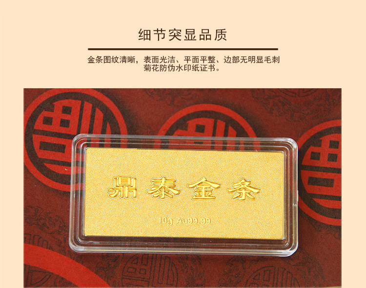磨砂橫版采用了細(xì)磨砂、鏡底、油壓工藝。金條整體圖案文字清析,外形規(guī)整,表面磨砂顆粒觸感細(xì)膩,邊角平順。